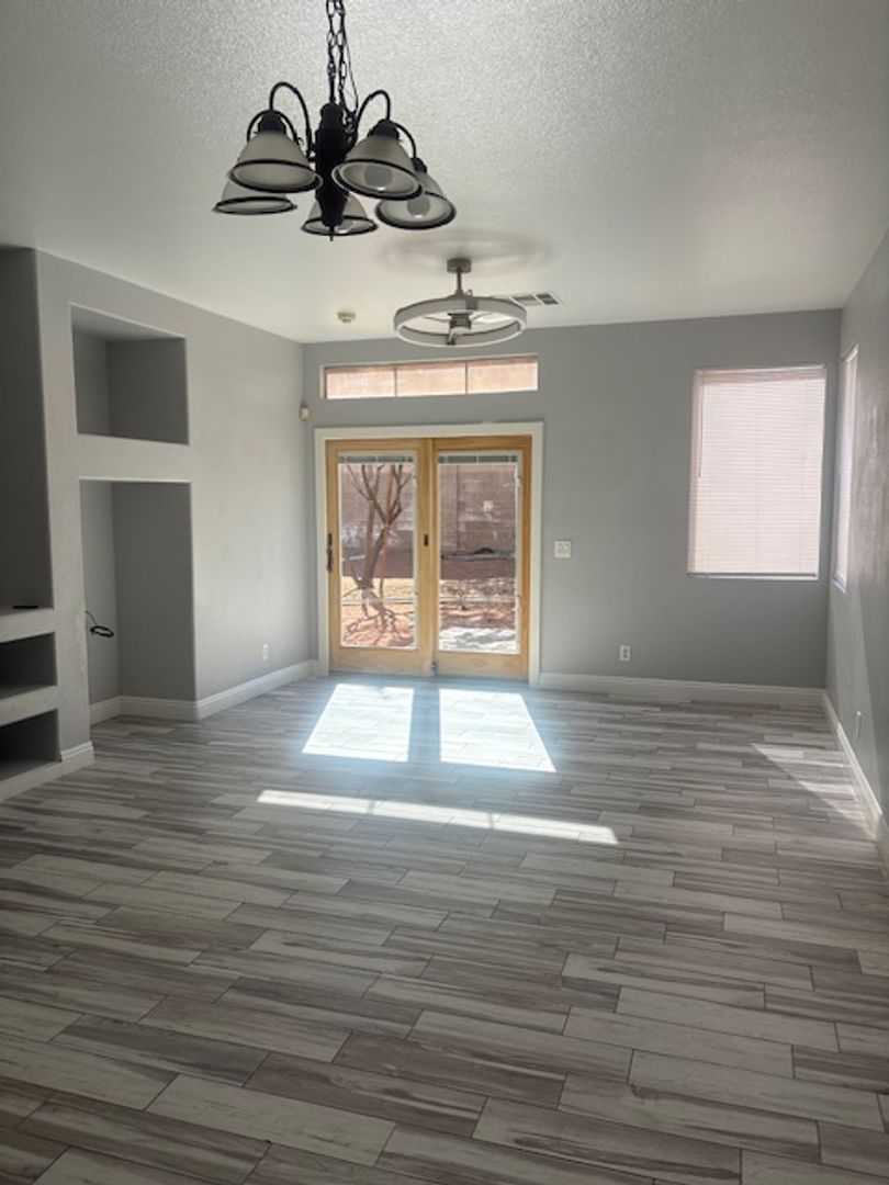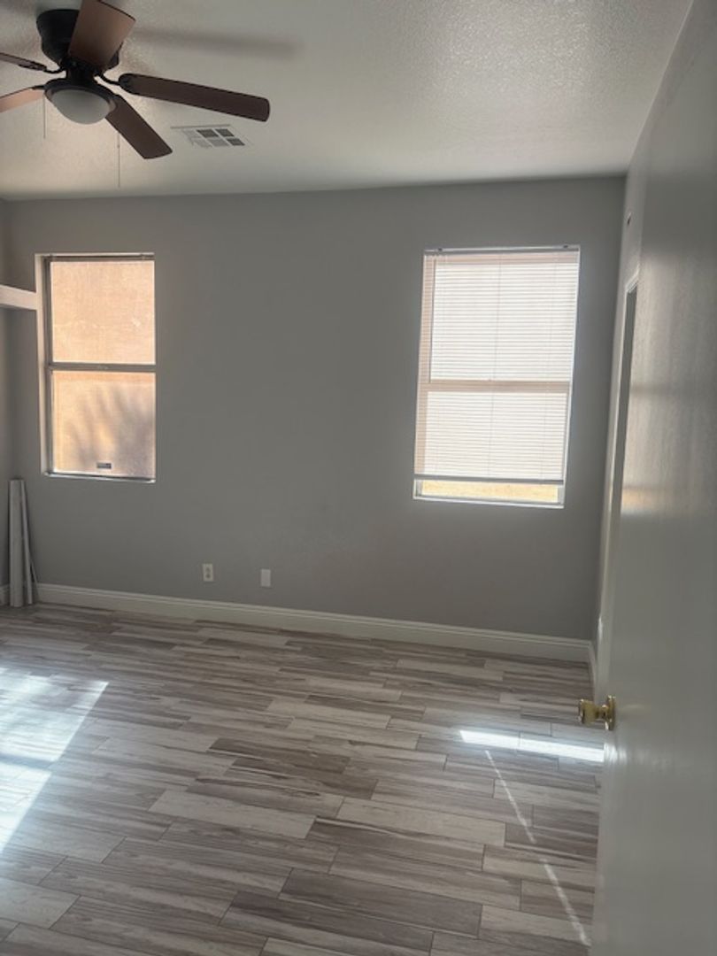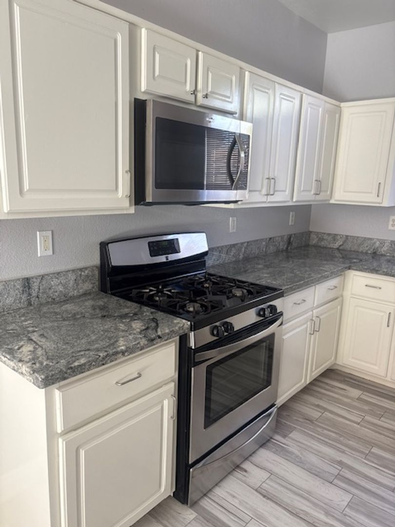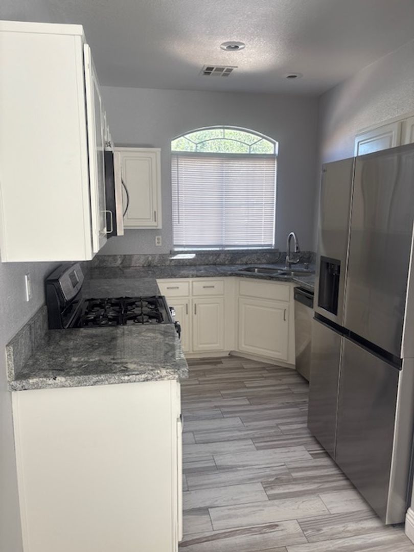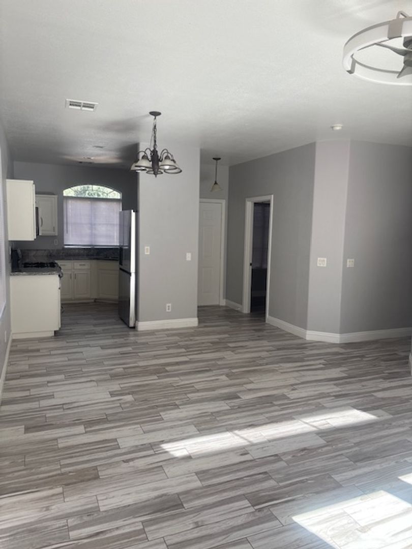 Charming single-story home featuring 2 bedrooms plus a den with a closet — ideal for a home office or potential third bedroom. This home offers tile flooring throughout, providing a clean and low-maintenance living space. The kitchen is upgraded with granite countertops and stainless-steel appliances, giving it a modern and functional feel. The layout is comfortable and open, with a bright living area and great flow throughout the home. Enjoy a large backyard